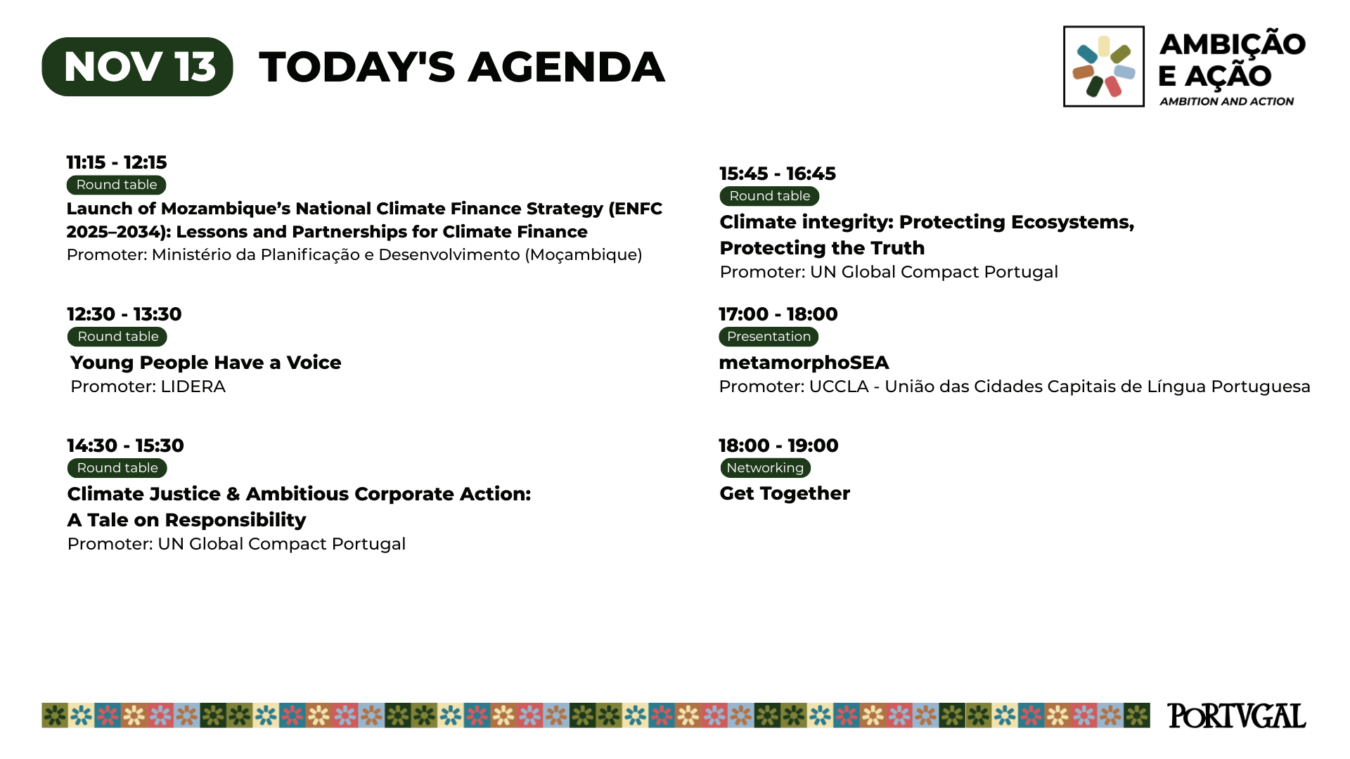 11:15 – Evento "Launch of Mozambique’s National Climate Finance Strategy (ENFC 2025–2034): Lessons and Partnerships for Climate Finance"